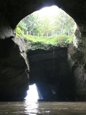 The Dōgashima Tensōdō cave extends 147 meters in length and features three entrances positioned at the south, east, and west sides of the structure.