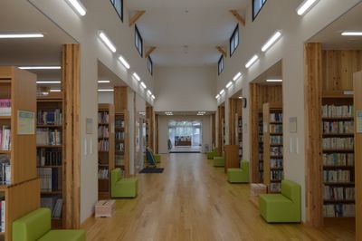 The Ibigawa Town Library operates as the central branch of a three-facility system in Gifu Prefecture, providing reading spaces and study areas.