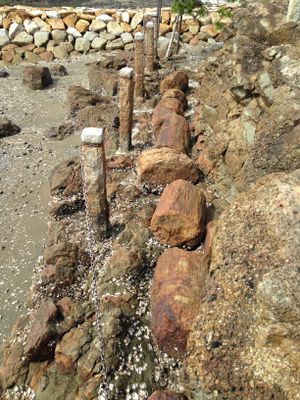 Hobashiraishi Stones in Najima, Petrified wood formations in Hakata Bay, Japan.