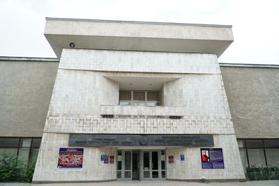 The building was designed by architect Shailo Djekshenbaev and displays Soviet brutalist architecture common throughout Kyrgyzstan. This architectural style shaped many public structures in the city during that era of urban development.