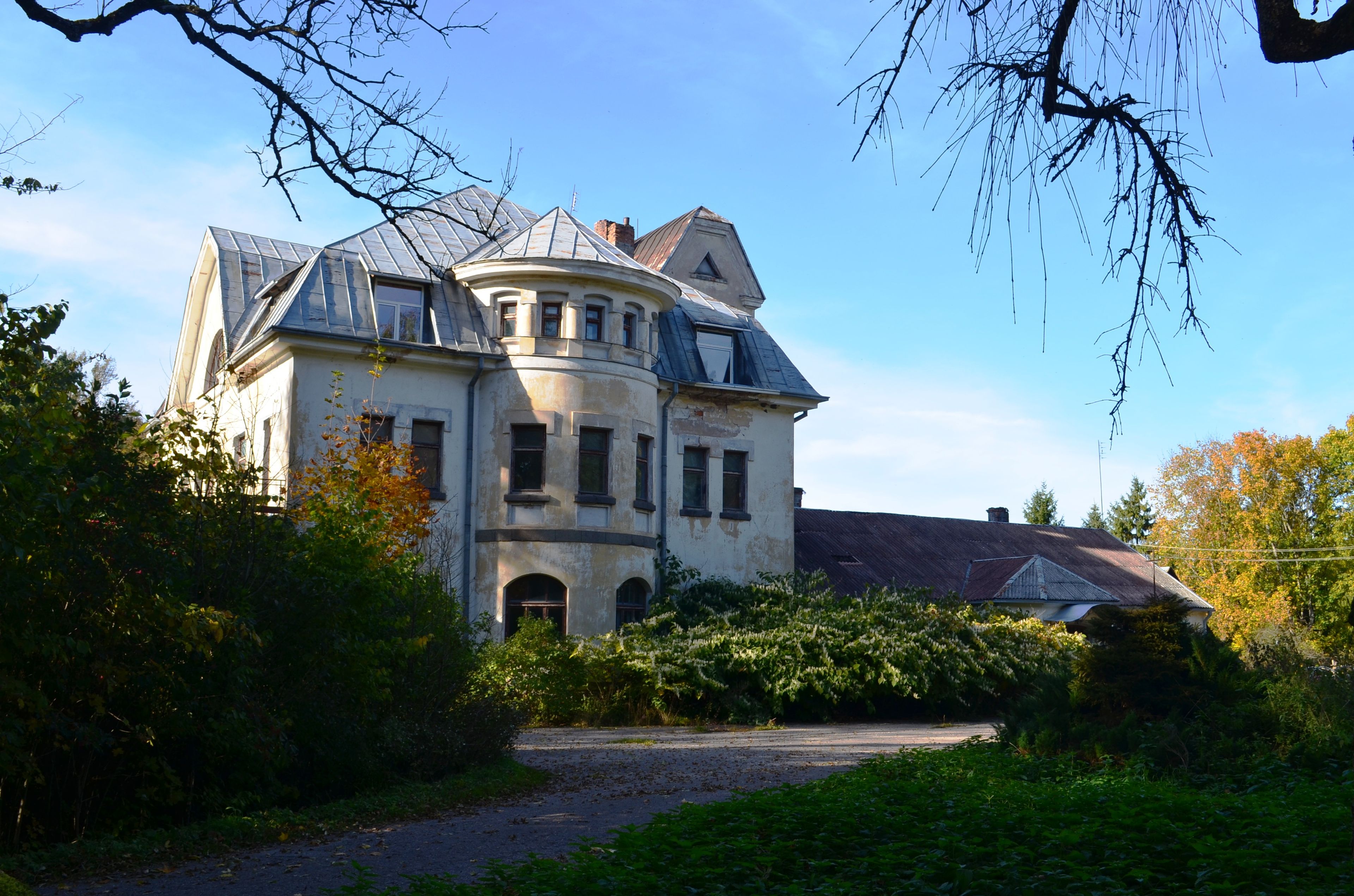 The main building of Terespolis Manor features architectural elements characteristic of the early twentieth century design movements in northern Europe.