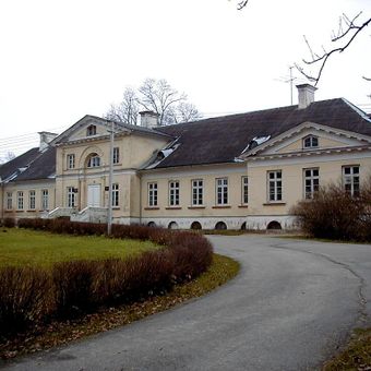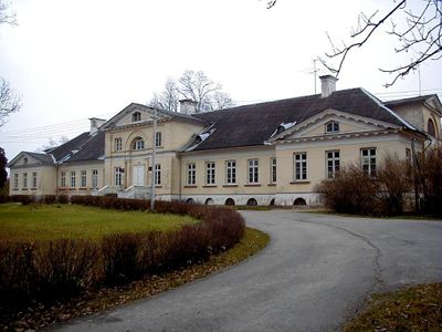 The property contains marble sculptures commissioned from artist Bertel Thorvaldsen, reflecting the architectural preferences of Baltic German nobility.