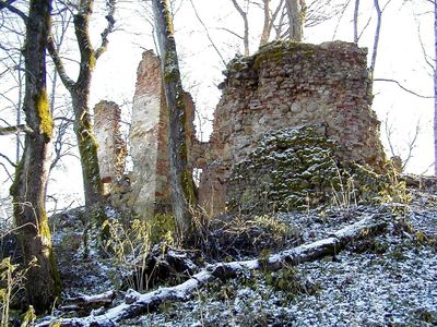 Embūte Castle, Medieval castle ruins in Courland, Latvia.