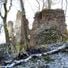 The ruins stand in a remote location surrounded by forest, requiring visitors to navigate through unmarked paths to reach the medieval structure.