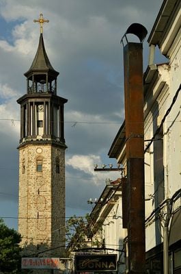 The clock tower remains visible from multiple points in Prilep and serves as a central reference point for navigating through the city streets.