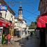 The Old Bazaar features winding streets lined with traditional shops, a prominent clock tower, and multiple architectural structures from different periods.
