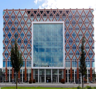Located near Gouda's train station, the ten-floor structure houses government offices, public meeting spaces, and administrative service centers for residents.