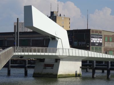 The bridge features a 27-meter movable section that allows vessels to pass through the Rijnhaven while maintaining the connection between districts.