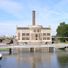 The Gothic Revival pumping station features eight suction pumps, pointed arches, battlements, and buttresses within its industrial architecture.