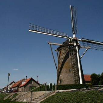 Boerderij, bestaande uit een gepleisterd woonhuis onder pannen zadeldak, evenwijdig aan de dijk.