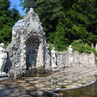 The Bedriegertjes consists of multiple water jets integrated into a mosaic floor within the shell gallery of Rosendael Castle landscape park.
