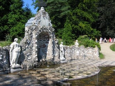 Daniel Marot designed this fountain complex around 1732, incorporating it into the broader architectural elements of the Rosendael estate grounds.