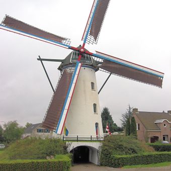 The mill is located at the west end of Molenakker street and easy to find in the town. Its position on a rise allows visitors to view the structure clearly from surrounding streets.