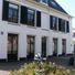 Lage landelijke gepleisterde woning met dubbele topgevel, kleine roeden, blinden