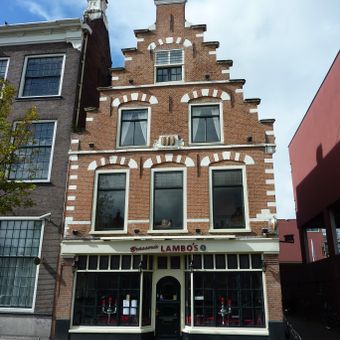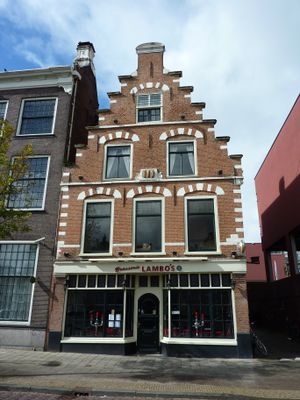 Pand met klokgevel, dodekop geverfd, houten deuromlijsting