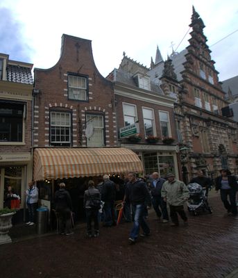 Achterzijde Vleeshal; terzijde smalle gevel met fraaie natuurstenen ornamenten en poort behorend tot Vleeshal complex