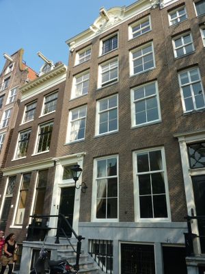 Pand met gevel onder verhoogde lijst met consoles, building in Amsterdam, Netherlands
