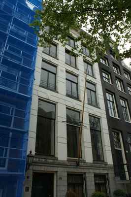 Huis met gevel onder latere rechte lijst waarop een verhoging