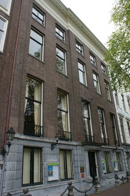 Dubbel huis met gevel voorzien van middenrisaliet en hoeklisenen, onder rechte lijst met attiek