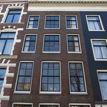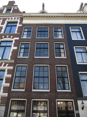 Huis met gevel onder rechte lijst en rondbogige dakkapel