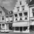 Pand met aangepaste pui en rechte kroonlijst met blokjes onder zadeldak met voorschild