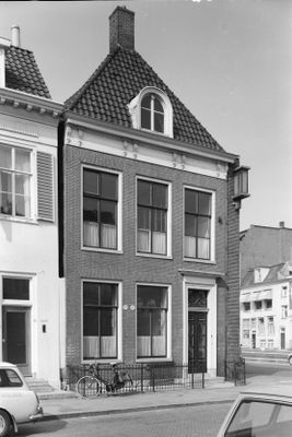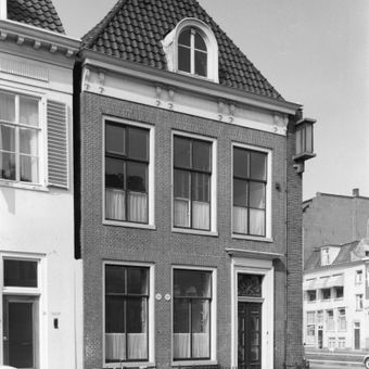 Pand met rechte kroonlijst met consoles onder zadeldak met voorschild, topschoorsteen en dakkapel, building in Leeuwarden, Netherlands