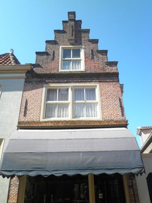 Pand met in 1942 herbouwde bakstenen trapgevel