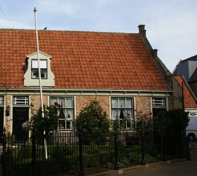Eenvoudige woning onder zadeldak met toppilaster ter halverwege, house in Enkhuizen, Netherlands