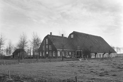 Boerderij van het type Vlaamse schuur behorende tot het boerderijcomplex aan de westzijde van de Rijsdijk te Rhoon, gebouwd in Ambachtelijk-traditionele trant.