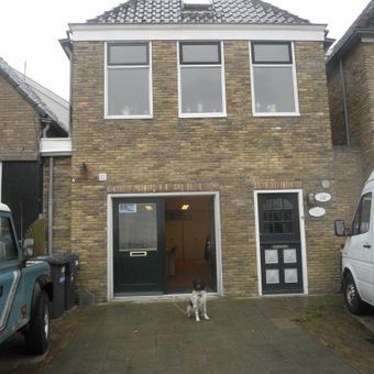 Eenvoudig pandje met topgevel van gele steen met beitelingen, building in Terschelling, Netherlands