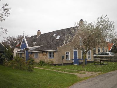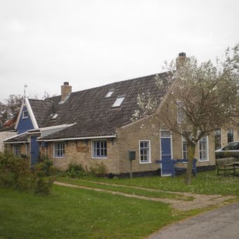 Eenvoudig huisje in de vorm van een boerderijtje aan de voet van de molen