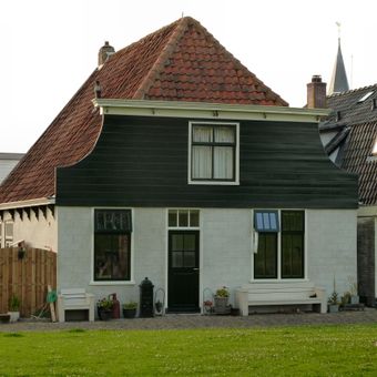 Groot pand met afgeknot ingezwenkt houten voorschot, building in Texel, Netherlands