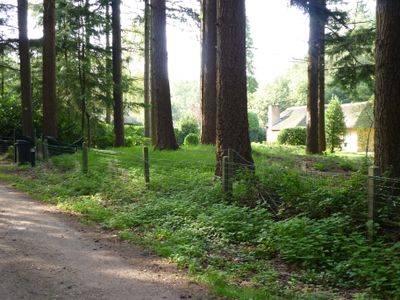 Een schaapskooi van gepotdekselde houten delen met rieten dak, mooi gelegen in het geboomte