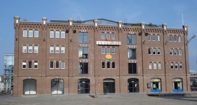 The structure includes its dedicated harbor, the Entrepothaven, with a 10-meter wide gallery featuring iron rails for portal cranes.