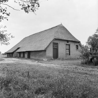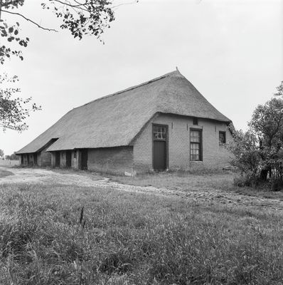 Gaaf vroeg 19e-eeuws boerderijcomplex, bestaande uit dubbele woning onder rietgedekt schilddak en haaks daarop staand bedrijfsgedeelte onder aan achterzijde afgewolfd rietgedekt zadeldak met uilebord