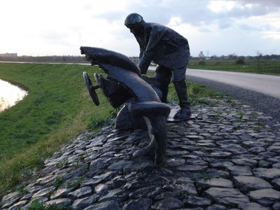 The statue represents Dutch water management expertise and commemorates the local community's determination to protect their land from flooding.