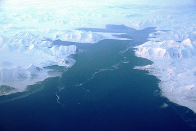 The fjord experiences heavy drift ice during early summer months, making navigation challenging and requiring careful timing for vessel passage.