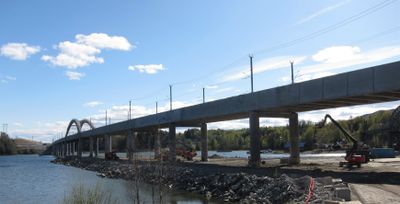 The bridge's engineering includes specific structural elements such as rebar couplers and T-headed bars, designed by consulting firm Dr.Ing. Aas-Jakobsen AS.