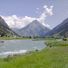 The Kishanganga River flows through this 2,400-meter-high valley, bordered by snow-covered peaks and populated with fir trees along steep mountainsides.