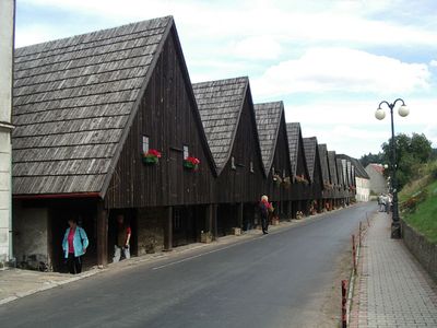 Chełmsko Śląskie is a village in Lower Silesia near the Czech border with a central Market Square, traditional houses, and a Baroque church. The settlement is known for its connection to textile work, with buildings that once belonged to weavers and whose half-timbered structures remain intact.