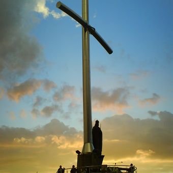 The monument was built in the late nineteen eighties as a pilgrimage destination in the Beskids. It was developed to draw believers from across the region and create a place for spiritual reflection.