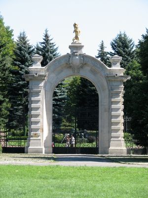 The garden features a dinosaur valley displaying 16 full-scale reconstructions based on fossils discovered by Polish expeditions to the Gobi Desert.