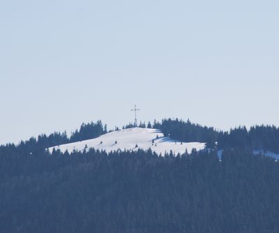 The Jubilee Cross of Żywiec Land, measuring 23.5 meters in height, was constructed at the peak in September 2000 to mark the Catholic millennium.