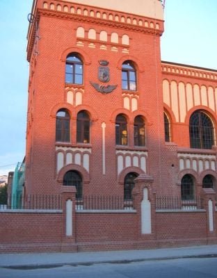 The Municipal Tram Power Station is an industrial building made of red brick located on Przyokopowa Street. It features tall windows and displays the structural style typical of early 20th-century electrical facilities across central Europe.