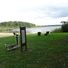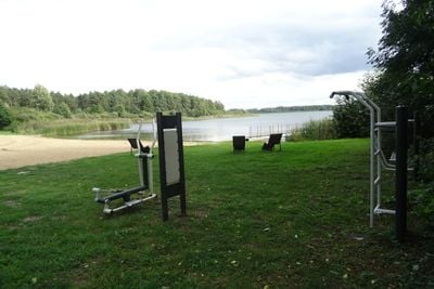 The village positions itself between two sections of Lake Wieczno, creating a natural division between the northern and southern parts of the water body.