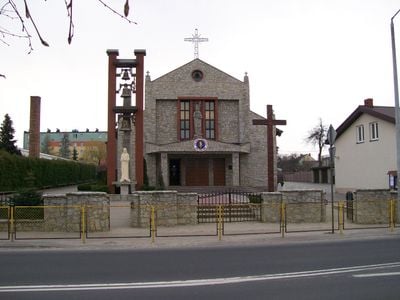 Saint Stanislaus church is a Roman Catholic building in Wieluń located in a residential neighborhood on 18 Stycznia Street. The structure contains multiple levels, including a lower church section that initially served as a chapel during the congregation's early years.