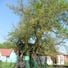 The European white elm features a thick trunk measuring 930 centimeters in circumference and reaches a height of 19 meters with a large base cavity.
