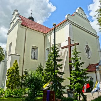 The original wooden church was built in 1634, while the current brick structure was completed in 1710 and consecrated by Bishop Wojciech Bardzinski in 1714.