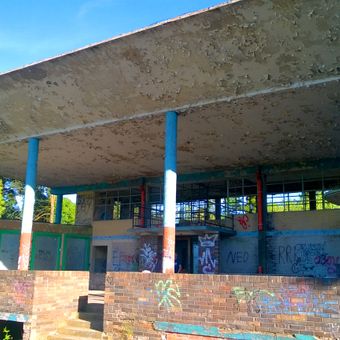 The pool facility was established in the 1920s as part of a health resort complex dedicated to treating respiratory and rheumatic conditions.
