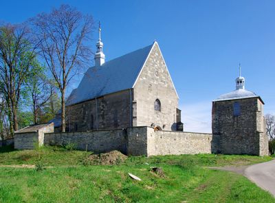 Obwarowania cmentarza przykościelnego z wieżą bramną, murami kurtynowymi, 2 basztami i 3 bastionikami